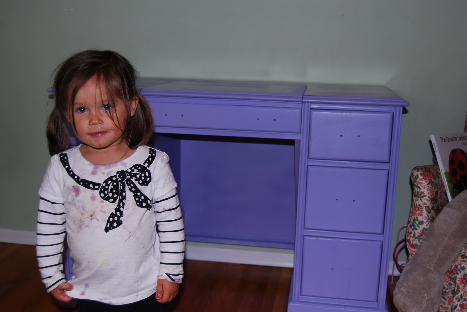 So yay. I am happy. B is happy and I think Emily is pleased. Can't wait to get the hardware back on and a few little nick nacks to add a little bit of extra to the desk - oh and I need a little chair or bench...