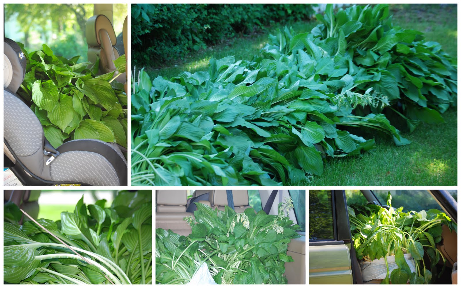 MAJOR SCORE!!! B says, the front seat, the back seat and the back of my car are filled with Hostas!!! It is like Christmas in Summer and I am giddy as hell for my Hero to come home with my plants!